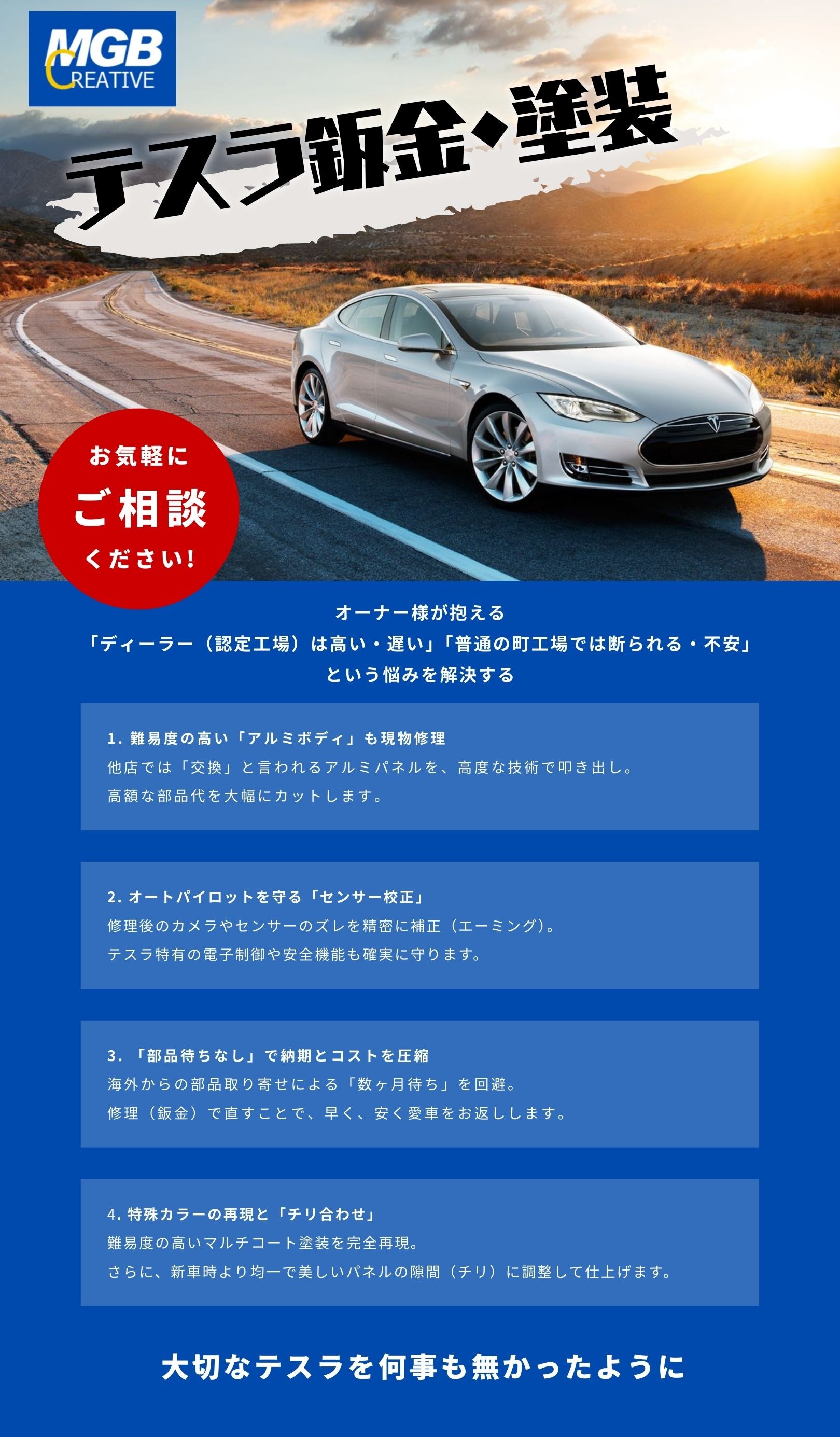 テスラ鈑金塗装のことなら何でもご相談下さい!